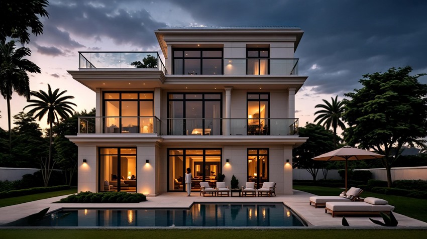 Discover unmatched elegance in this 6-bedroom standalone luxury villa, featuring all master bedrooms, a maid’s room, and a driver’s room, designed to offer both comfort and privacy. This high-quality villa stands out with unique architectural design, private elevator, swimming pool, and landscaped garden — perfect for premium living.