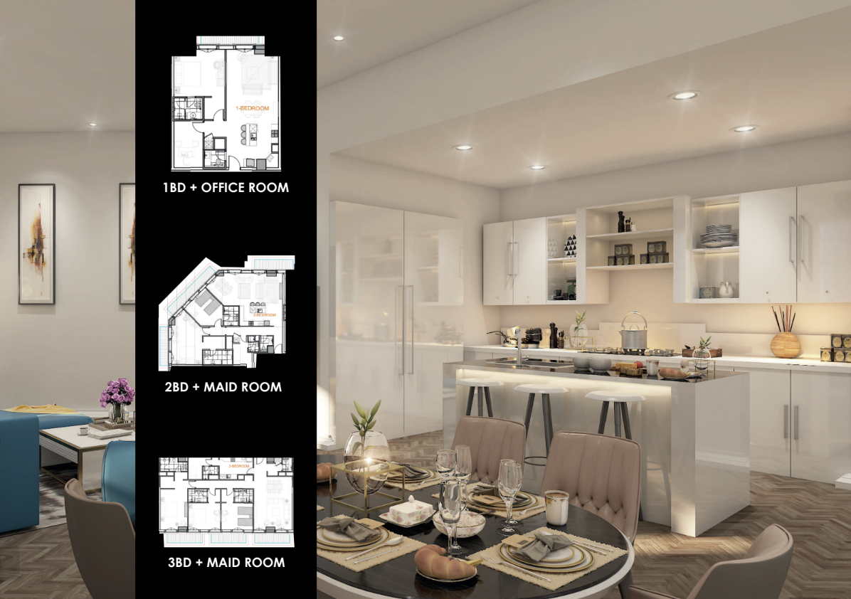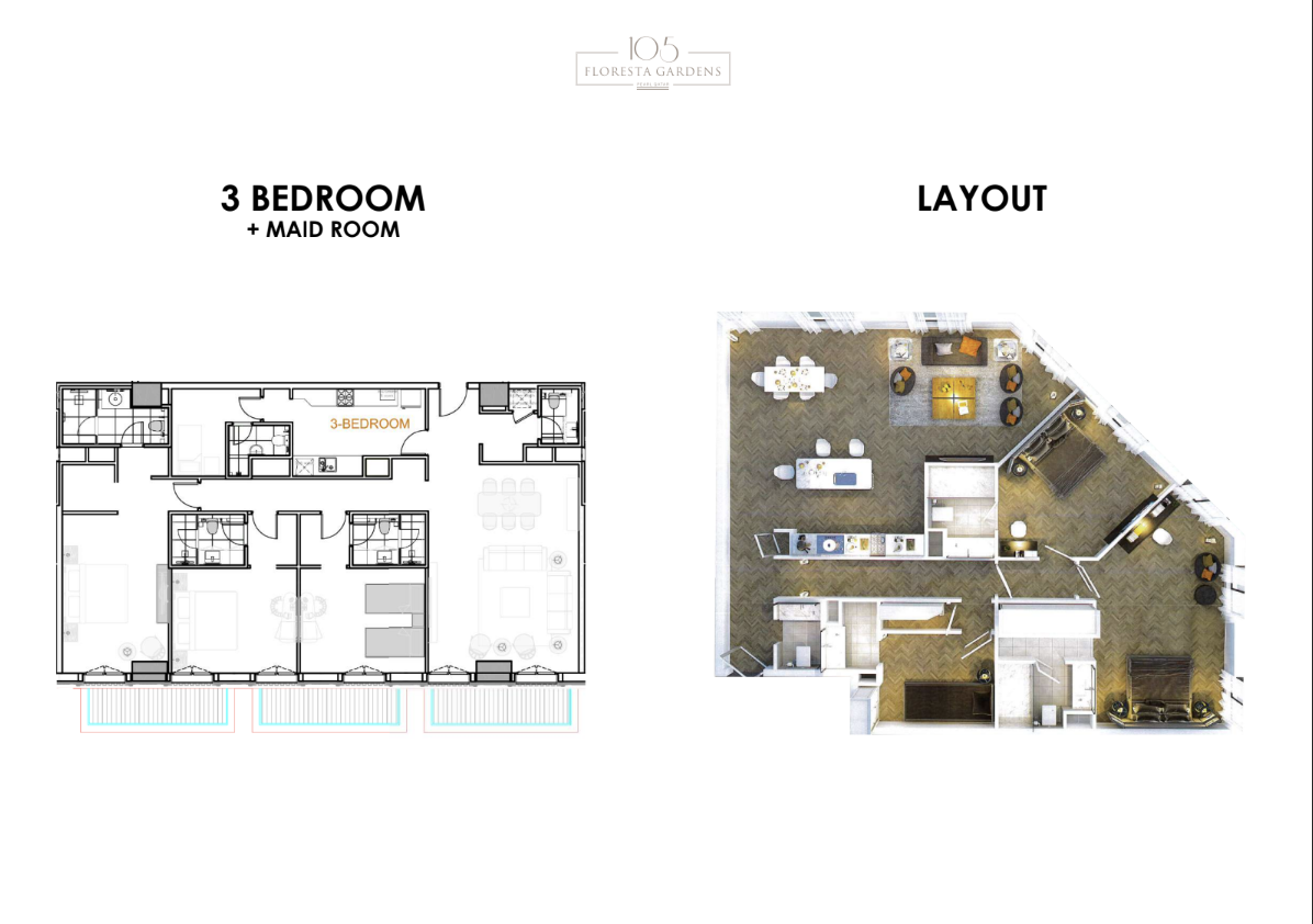 The apartment includes two generous bedrooms, a maid’s room, and ample storage space. Enjoy central air conditioning, high-quality finishes, and abundant natural light throughout. Residents benefit from exclusive access to Floresta Gardens’ premium amenities, including a swimming pool, gymnasium, children’s play area, and beautifully landscaped open spaces.